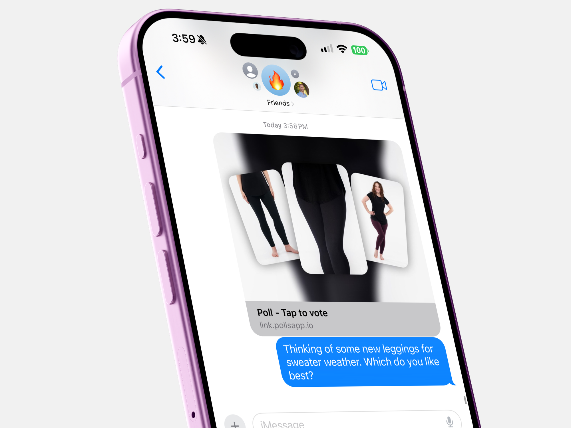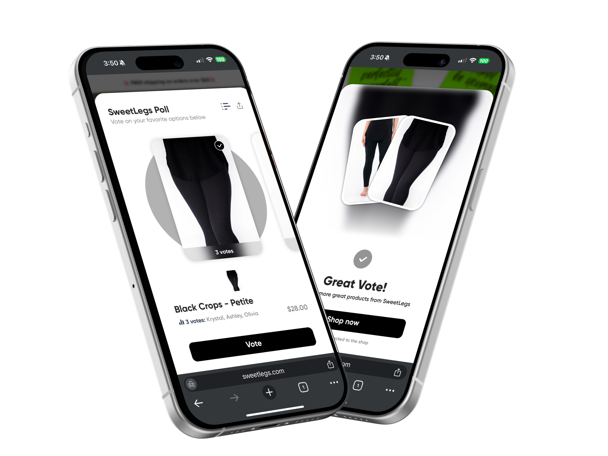 Enter our social shopping app. Using interactive polls, customers were invited to share polls with their friends to get real-time input on their favorite styles, colors, and trends. It’s a dynamic way to engage potential buyers and nudge them toward purchases, while introducing their friends to the SweetLegs brand.