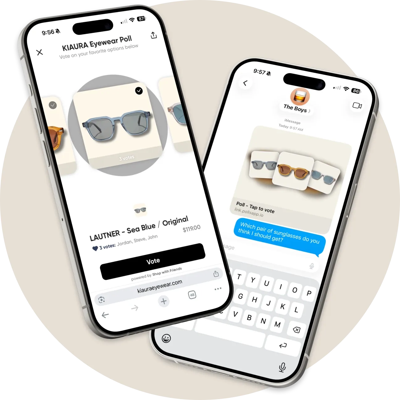 - Frictionless Sharing – A poll is sent in seconds, with friends instantly able to vote, discuss, and buy.