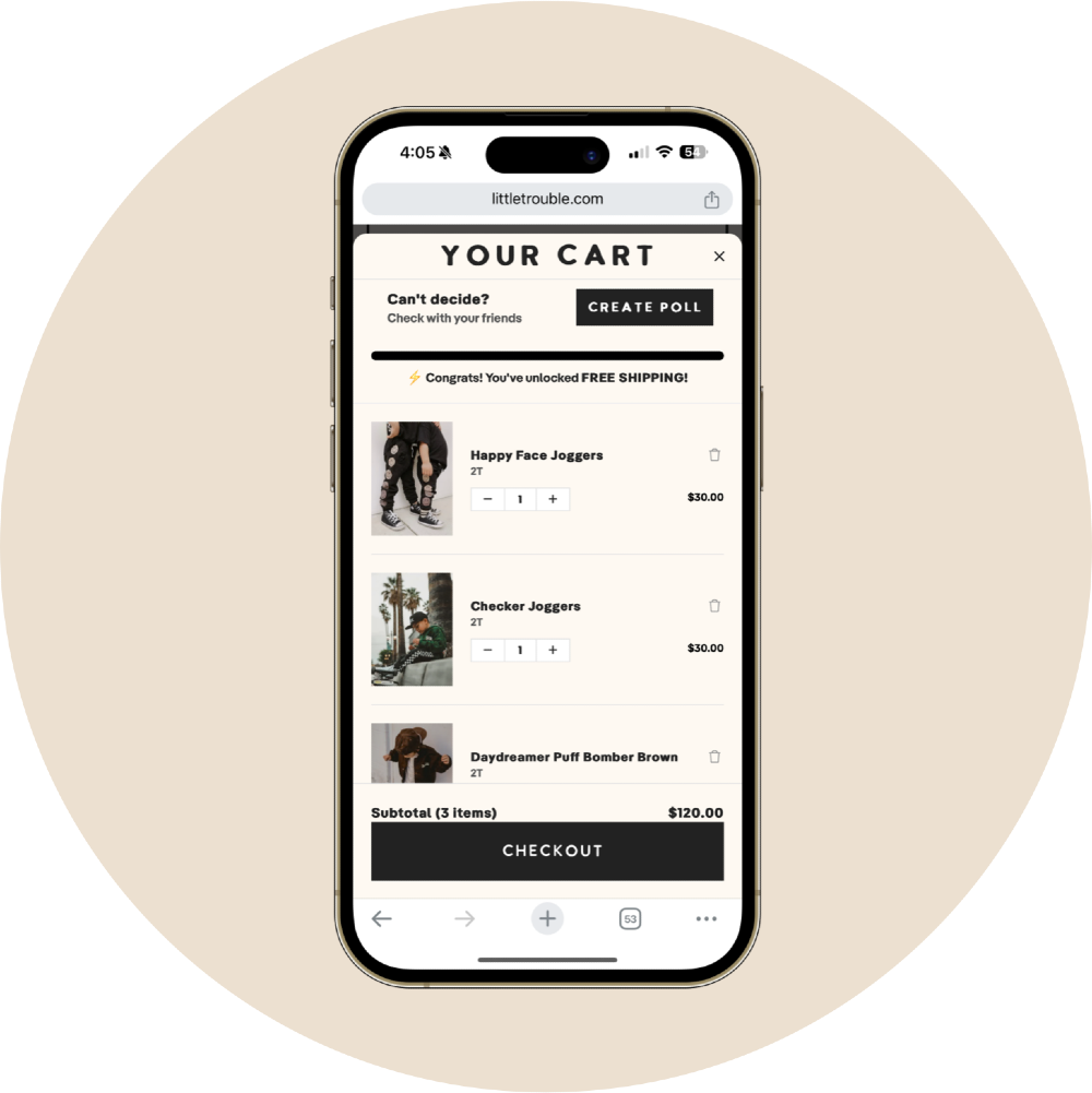 Polls made it easier for shoppers to share Little Trouble with their ideal demographic (young parents with young kids) while giving them the push they needed to click ‘CHECKOUT’